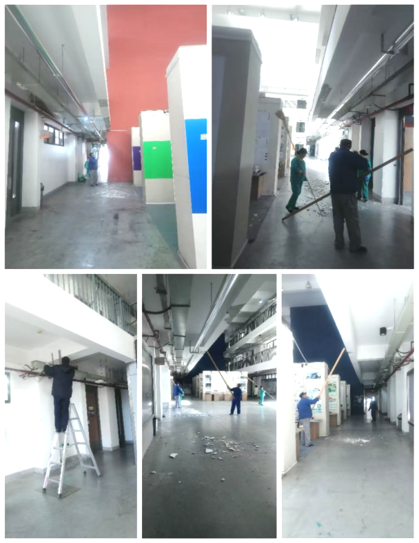近日,后勤管理处(基建处)接到师生反映,1#教学楼部分墙皮存在局部空鼓及脱落现象。处领导高度重视,第一时间启动应急预案,迅速组织物业人员进行处置,有效保障了师生通行安全。