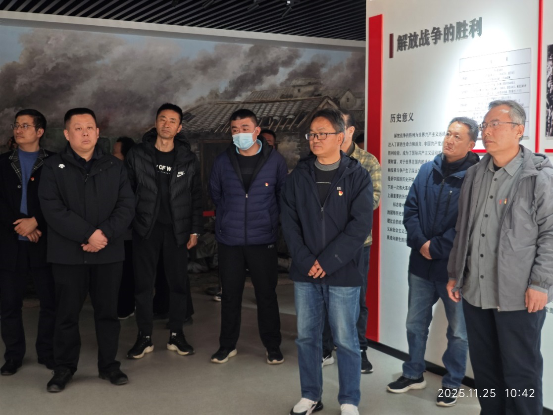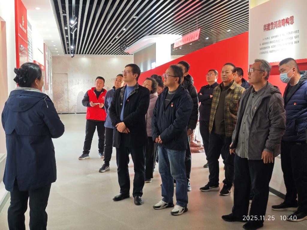 在田庄镇红色研学展厅,大家依次参观了“革命历程展厅”“英雄事迹长廊”“红色文献馆”等多个展区。泛黄的革命书信、锈迹斑斑的枪械农具、定格历史瞬间的珍贵照片、详实厚重的文字史料,系统再现了革命先辈在鲁西南大地上开展武装斗争、建立革命根据地、带领群众脱贫致富的峥嵘岁月。在“鲁西南战役关键节点”互动展板前,大家驻足良久,认真聆听讲解员讲述刘邓大军千里跃进大别山途中,在巨野地区浴血奋战、军民同心的感人故事;在“革命先烈名录墙” 前,党员干部们自发列队,凝视着一个个闪亮的名字,深切缅怀革命先辈为民族解放、人民幸福作出的巨大牺牲。现场学习过程中,党员们不时相互交流感悟,仿佛穿越时空回到了烽火连天的革命年代,深刻体会到了共产党人“为中国人民谋幸福、为中华民族谋复兴”的初心使命。